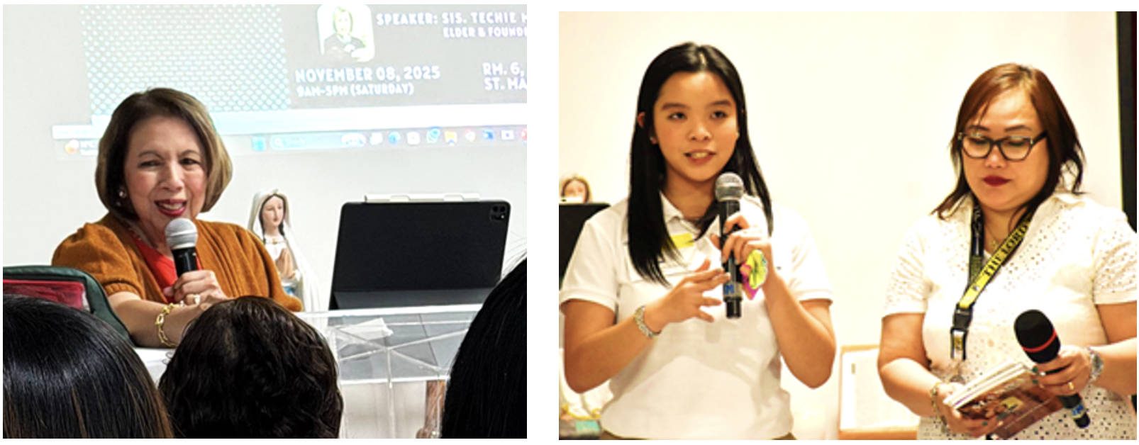 On the third day of the outreach, Soar, the Elder-Founder, led the chapter Spirit Empowerment Seminar (SES) at St. Mary’s Church Parish Rooms 5 & 6, just above the Mini Hall. About one hundred fifty (150) members came to the spiritual event, with seventy of them joining for the first time. It was a special moment for the chapter, as it was the first time in twelve years that we were so blessed to have our Elders, Tatay Bob and Soar, with the co-founder, Bro. Froilan Hong. They were supported by the other members of the Outreach team—Sis. Baet, Sis. Dinah, Sis. Resse, and Bro. Mel—whose presence gave us strength and encouragement throughout the day.