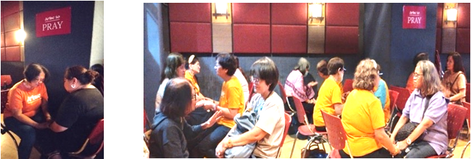 Before the event, the Ministry prayed to the Holy Spirit for guidance on what should be done to assist/guide participants who would come. Stewards and Cell Group Leaders of the Ministry convened to discuss the matter and planned the actions to be taken. Since the foremost service of the Ministry is to intercede for others, a one-on-one prayer and face-to- face set-up were considered the main options. The writing of prayer requests on a piece of paper, to be prayed by the ministry, was also a possibility.  Additionally, the Ministry would provide gifts to the participants to inspire them to connect with God in prayer.